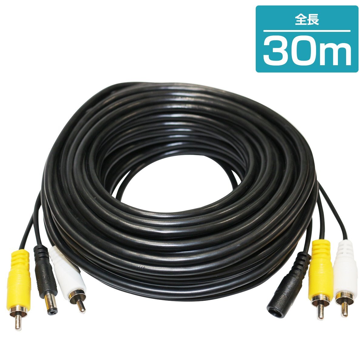 - 30m RCA延長ケーブル 2系統 RCAピンケーブル オス-オス&電源付き 映像 音声 延長コード 配線セット 分配 防犯カメラ バックカメラ ナビ