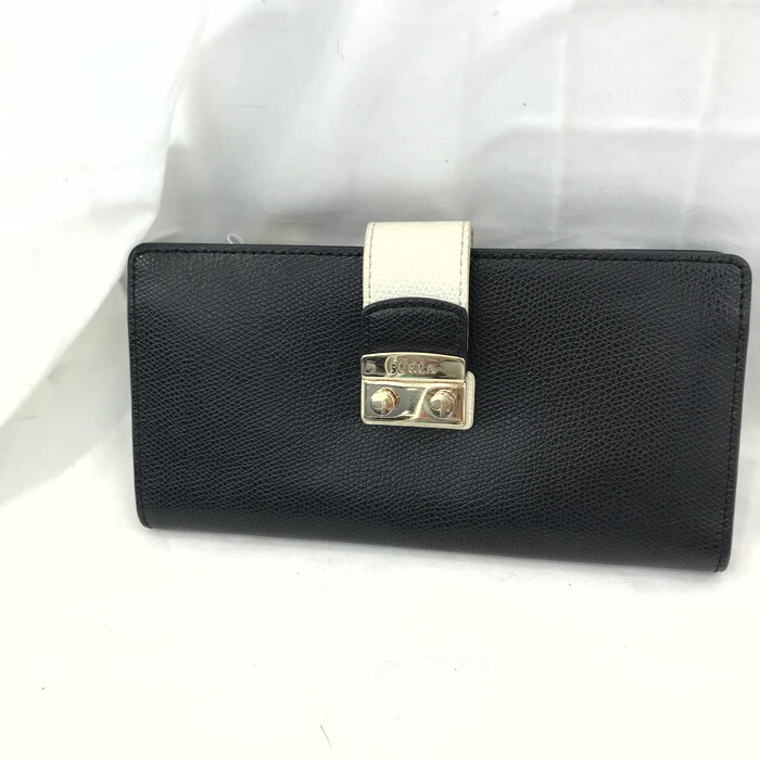 > FURLA METROPOLIS ジップアラウンド 二つ折り長財布 ブラック レザー [jgg]