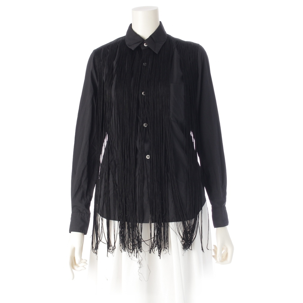 - コムデギャルソン コムデギャルソン AD2021 コムコム 製品染め フリンジ デザイン 長袖シャツ RI-B007 ブラック XS【中古】