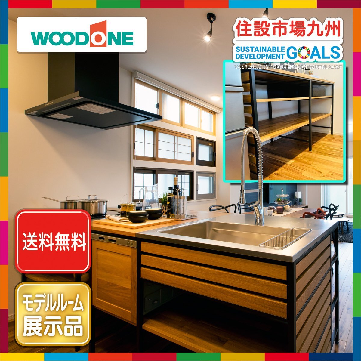 > ●送料無料●【福岡】W2430 システムキッチン カップボード KUROMUKU ウッドワン 水栓/レンジF/食洗機/コンロ◆モデルR展示設置品◆AAA1.2