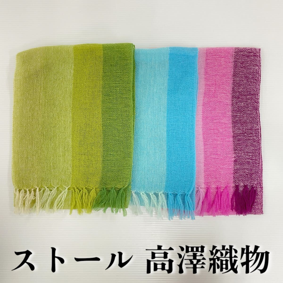 > 【ストール 高澤織物】未使用 カシミヤ? 秋冬 スカーフ ショール 肩掛け 膝かけ 国産 日本製 防寒 緑系 青系 ピンク系 #0263-738Z9