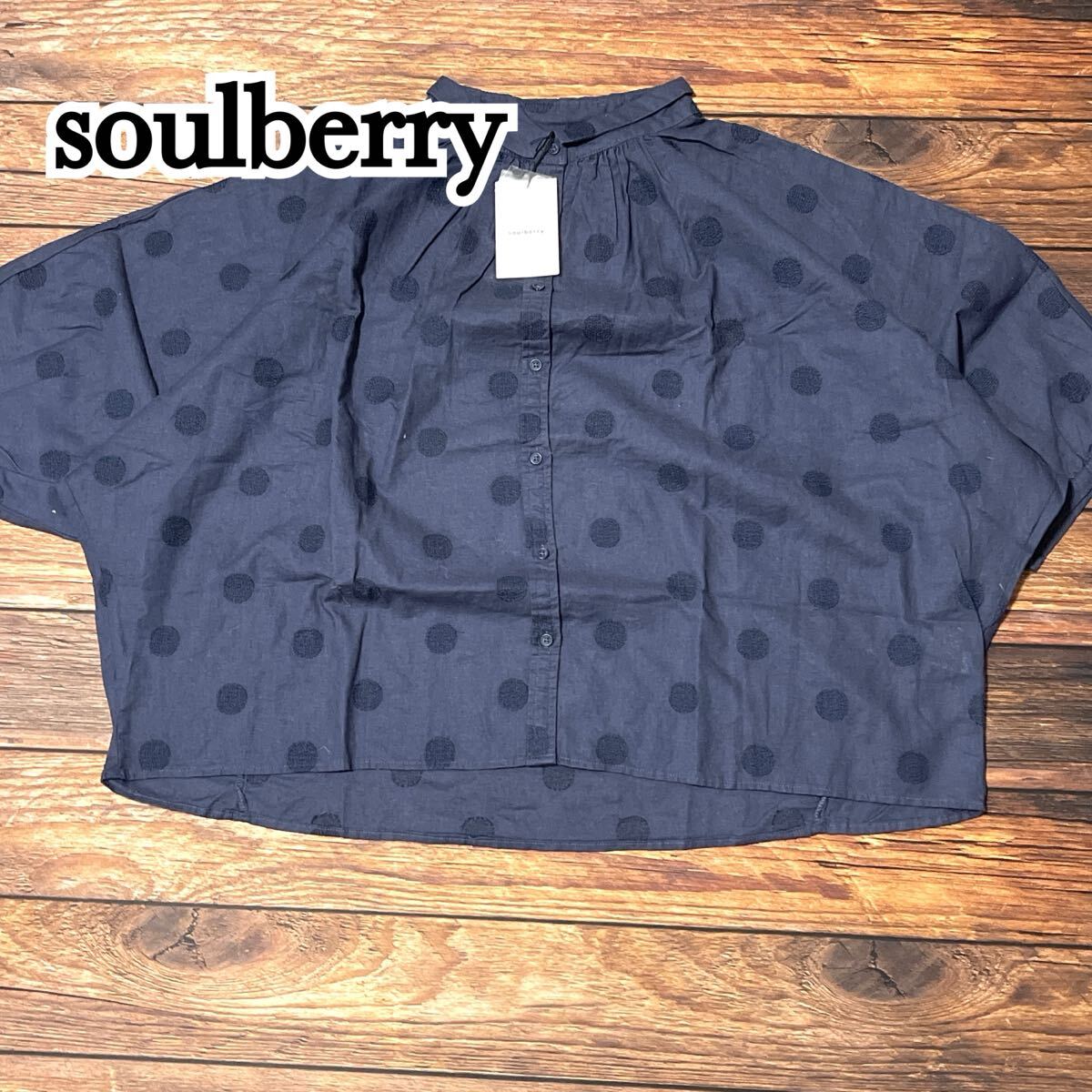 - 新品 未使用 soulberry ソウルベリー シャツ ブラウス レディース トップス 7分袖 七分袖 横幅ゆったり コットン ドット柄 ネイビー 4L