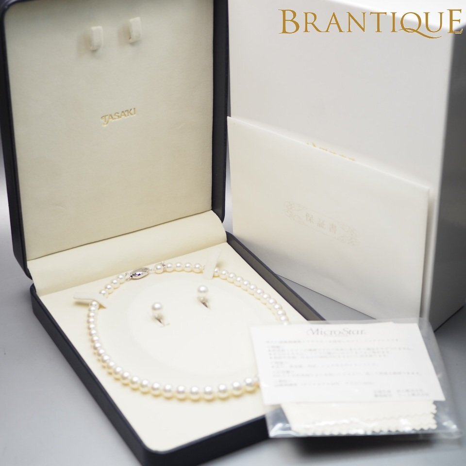 > ◆超美品/K14WG/パール◆ TASAKI 田崎真珠 K14WG 真珠 パール ネックレス イヤリング 冠婚葬祭 保証書 ケース 「27166」