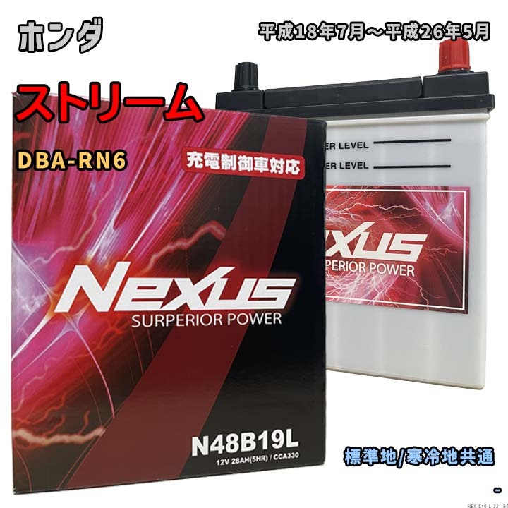 > バッテリー NEXUS N48B19L ホンダ ストリーム DBA-RN6 平成18年7月~平成26年5月 対応 B19L 互換 331