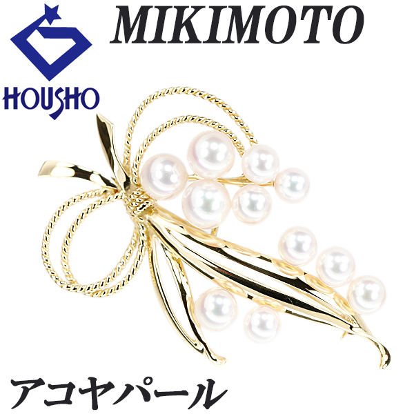 - ミキモト アコヤ真珠 ブローチ K18イエローゴールド MIKIMOTO リボン 送料無料 中古 宝正 902986