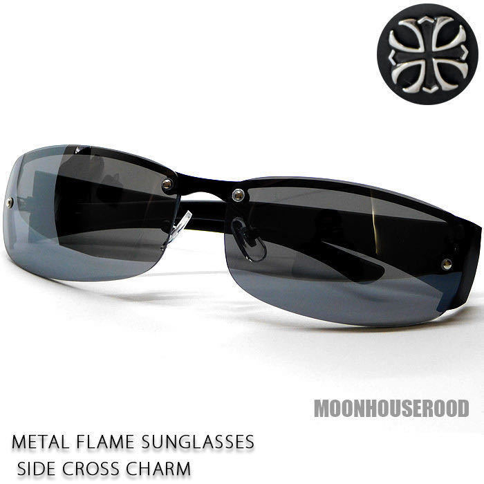 - 送料無料 サイドクロスパーツ サングラス メンズ UVカット オラオラ系 チョイ悪系 バイカーズ系 ロック系 伊達眼鏡 新品 スモーク■