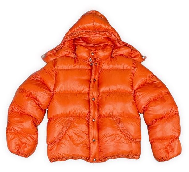 - 米国製 バニラゴリラ Vanilla Gorilla クレセントダウン ダウンジャケット フード着脱 短丈 シャイニーカラー オレンジ XS [ta-1568]
