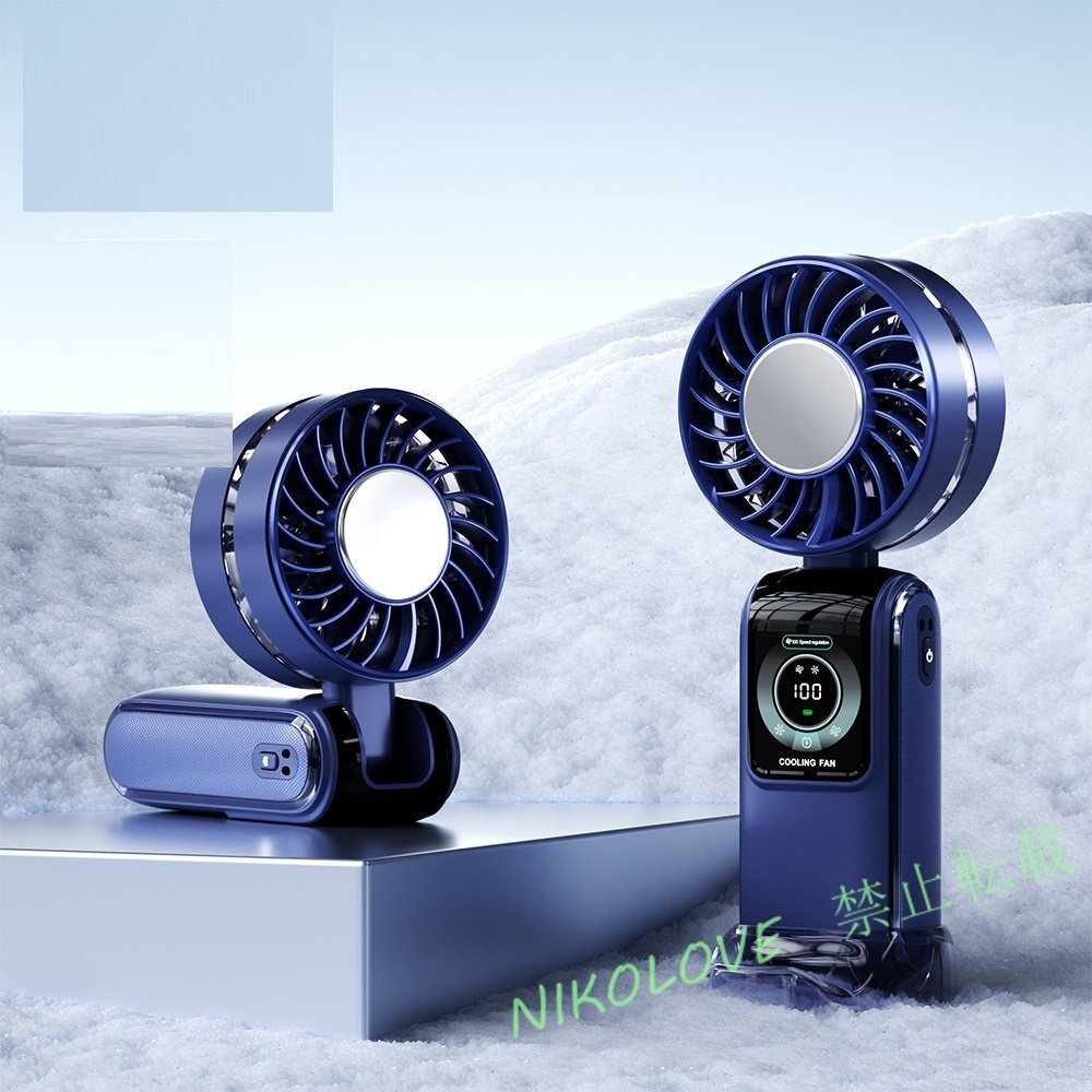 - 扇風機冷風機ハンディファン冷却プレート付き手持ち扇風機首掛け 強力瞬間冷却 USB小型 5段階風量 角度調整 携帯扇風機 熱中症対策ブルー