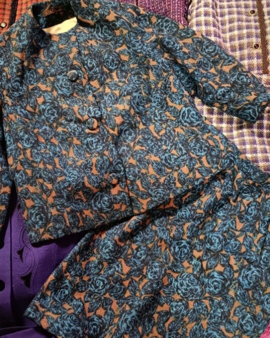 - 柄ブルー 昭和レトロ ヴィンテージ セットアップ