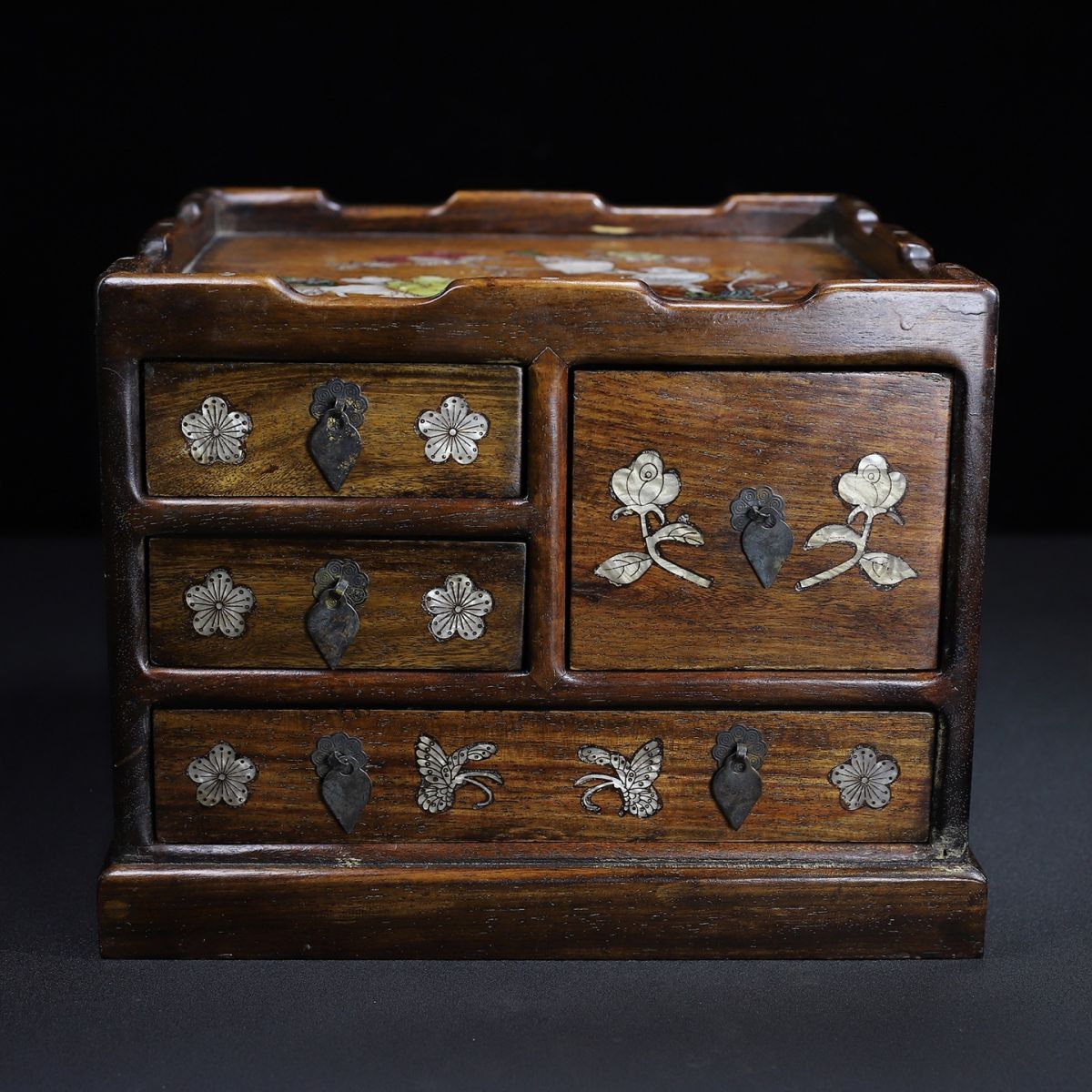 - 【永】清時代 花梨木嵌め螺鈿 花鳥図 木盒 極細工 置物擺件 古美術品 時代物 古董品 古美味 収集 旧家蔵出 中国唐物 A13216