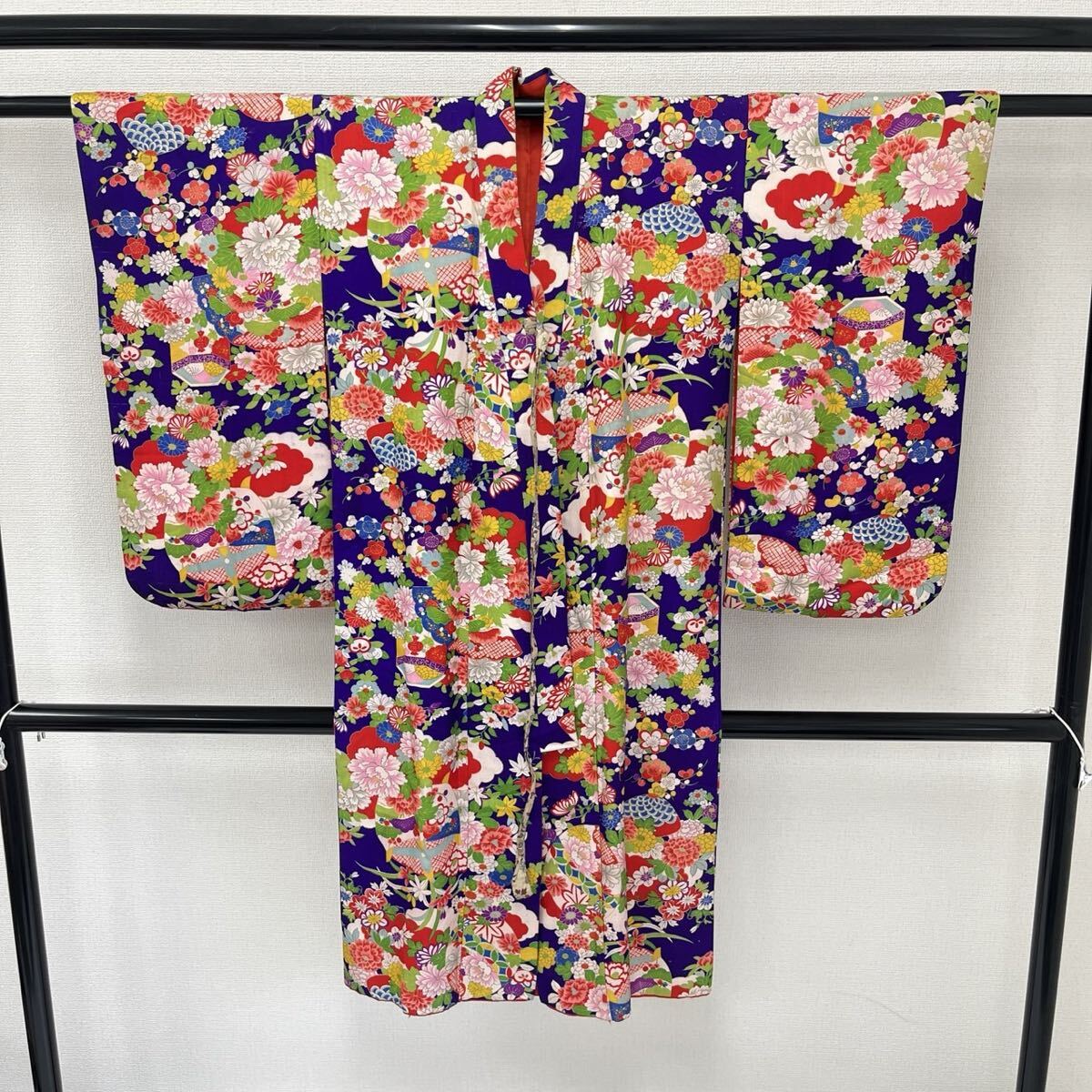 > アンティーク子供着物 古典柄の染め 着物 モスリンW-5309