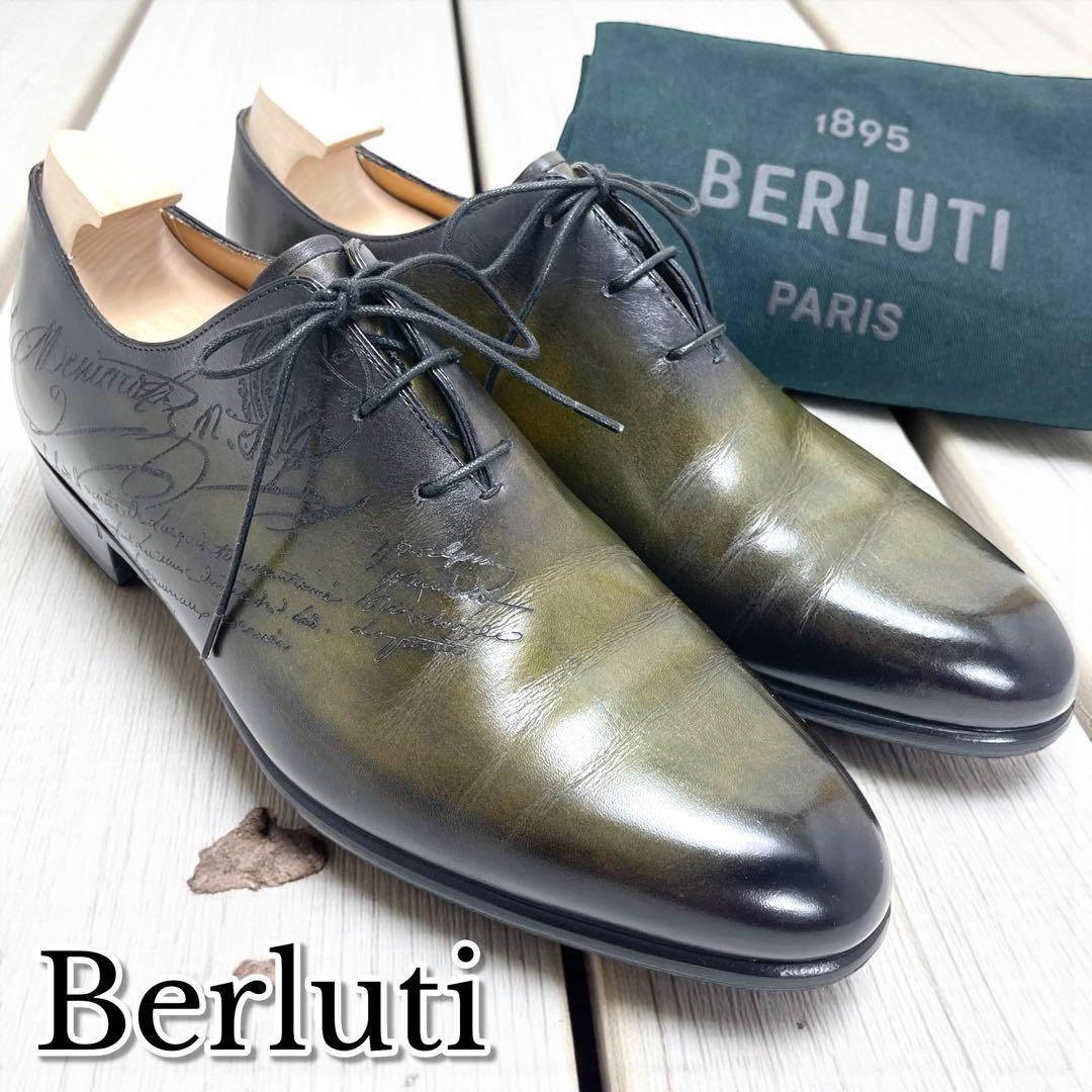 > 【希少色/純正ツリー付】Berluti ベルルッティ アレッサンドロ サイズ6 1/2 約25.5㎝ オリーブグリーン 特注パティーヌ スクリット刻印入り