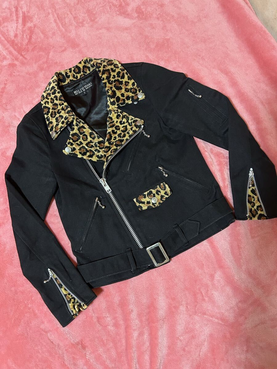 - HELL CAT PUNKS ブラック×ヒョウ柄 ダブルライダースジャケット ベルト付き 新品未使用