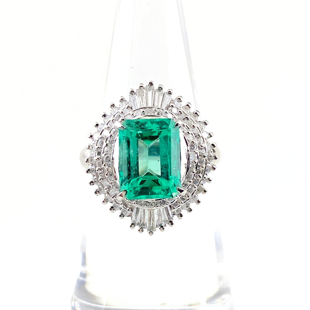 > エメラルド デザインリング プラチナ メレダイヤ 指輪 リング 11号 Pt900 エメラルド ダイヤモンド レディース 【中古】