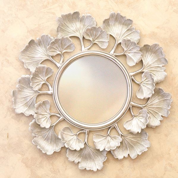 - 輸入雑貨 ミラー シルバー ロココ バロック いちょう リビングスタジオ 鏡 銀杏 クラシック シャビー アンティーク JYM9644S 送料無料