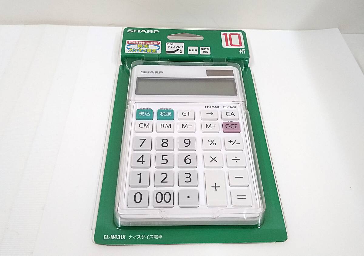 - 【TN-2322】未開封品/長期保管品/簡易動作確認済/SHARP ナイスサイズ電卓 EL-N431X ②/シャープ/電卓/10桁/ホワイト(SH)