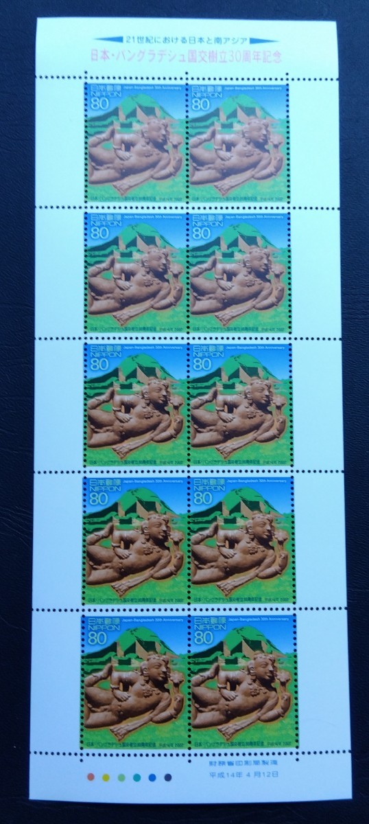 - 2002年・記念切手-21世紀における日本と南アジア(バングラデシュ)解説書付シート