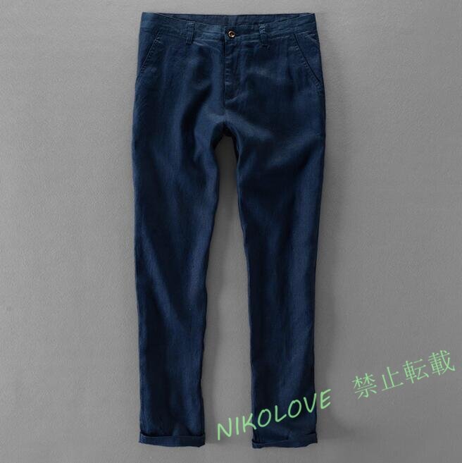 - ☆新品メンズパンツ スラックス 無地 チノパン リネンパンツ 最高級 麻 ロングパンツ ストレート 紳士 ビジネス ネイビー