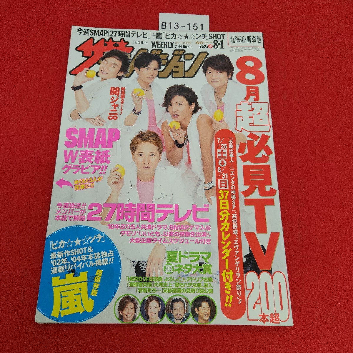 > B13-151 北海道・青森版 30 8・1号 ザ テレビジョン SMAP 27時間テレビ 他 2014年8月1日発行