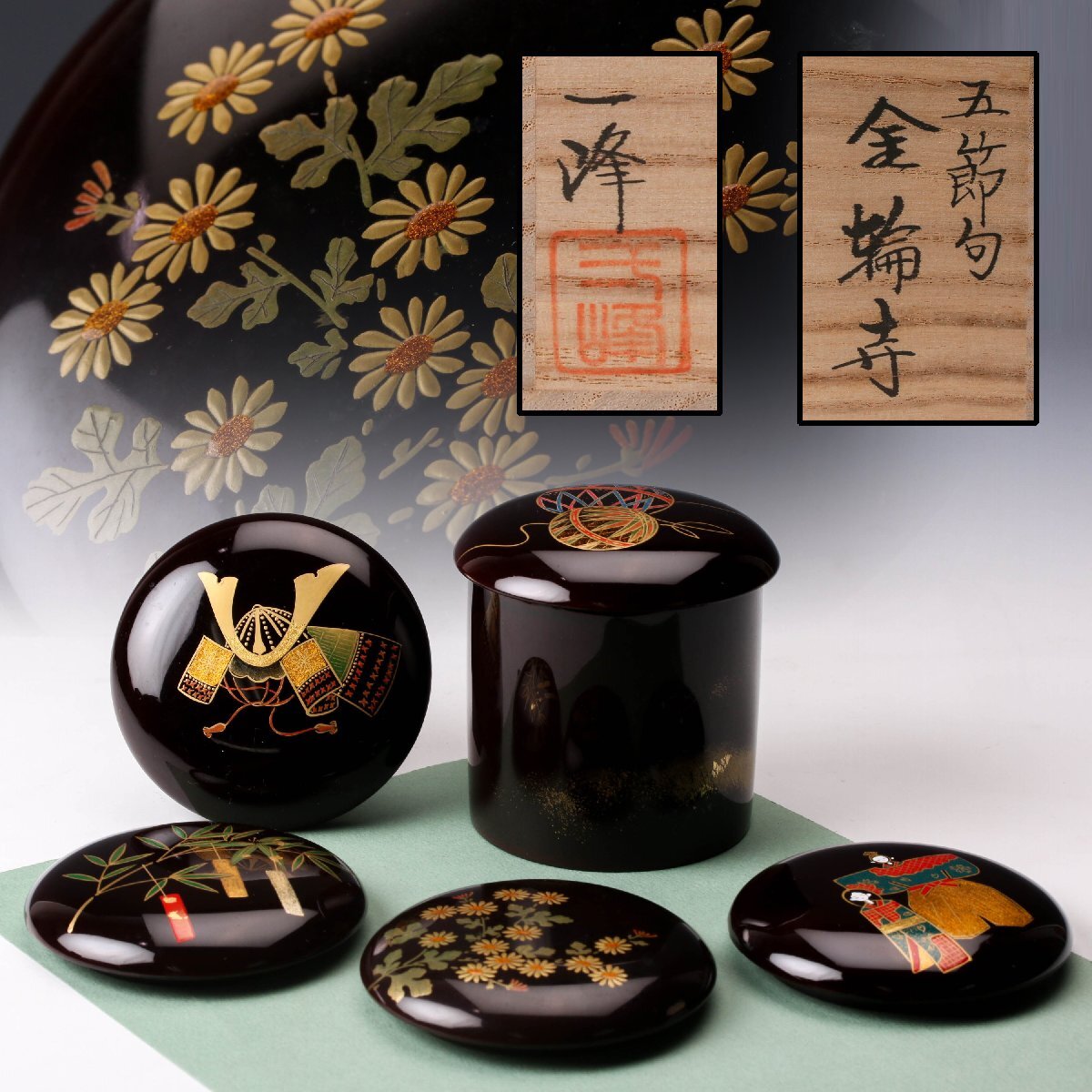【佳香】吉田一峰 五節句蒔絵 金輪寺 棗 共箱 茶道具 本物保証拍卖