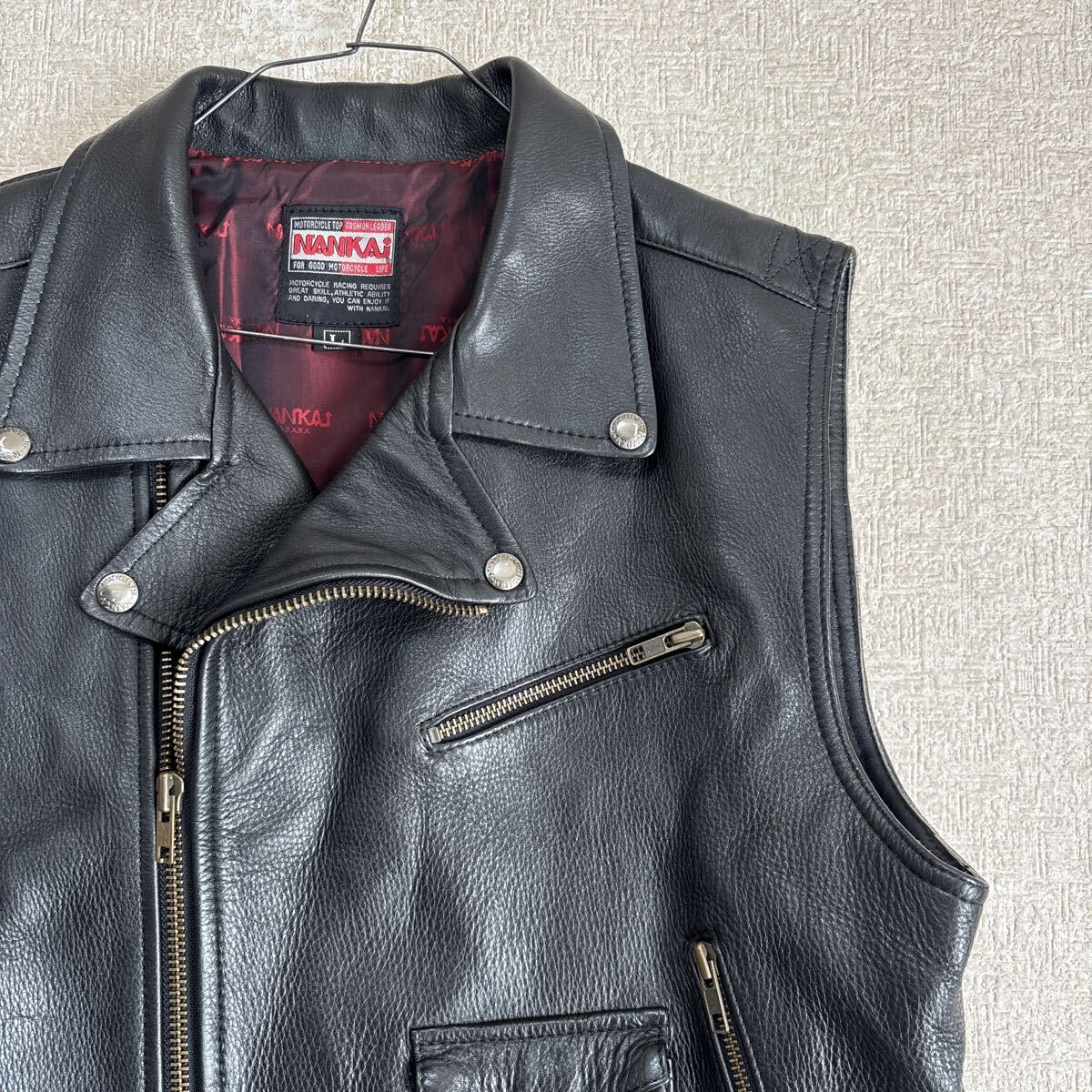 - 極上美品 NANKAI OSAKA ナンカイ レザーベスト 牛革 メンズLサイズ 本革 ライダースベスト