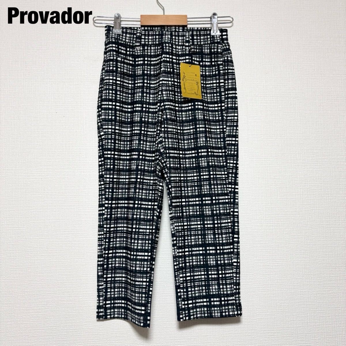 > 新品 タグ付き 未使用 Provador プロバドール レディース パンツ テーパード ストレッチ スラックス クロップド 半端丈 総柄 青 白 S