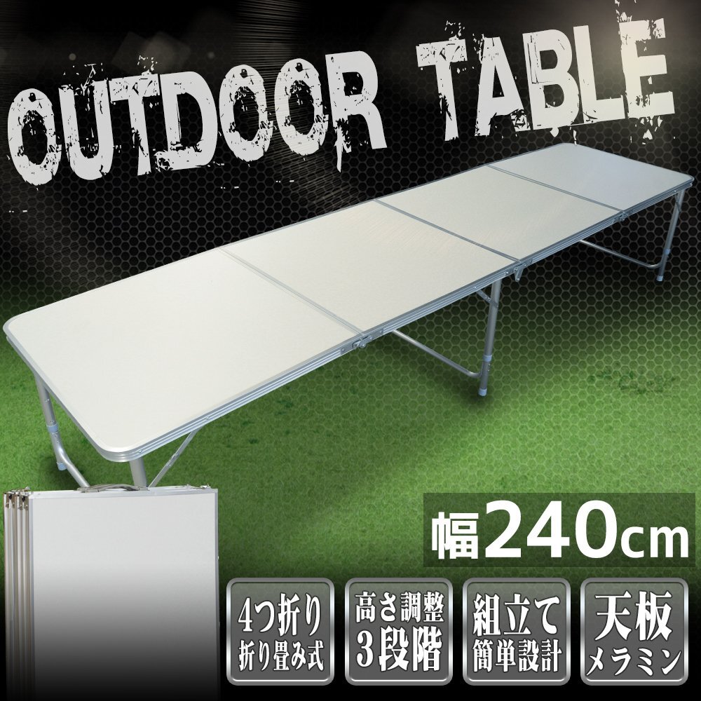 > [幅 240cm] 白 ホワイト レジャーテーブル 折りたたみ アウトドア ピクニック[アルミテーブル キャンプ バーベキュー BBQ]