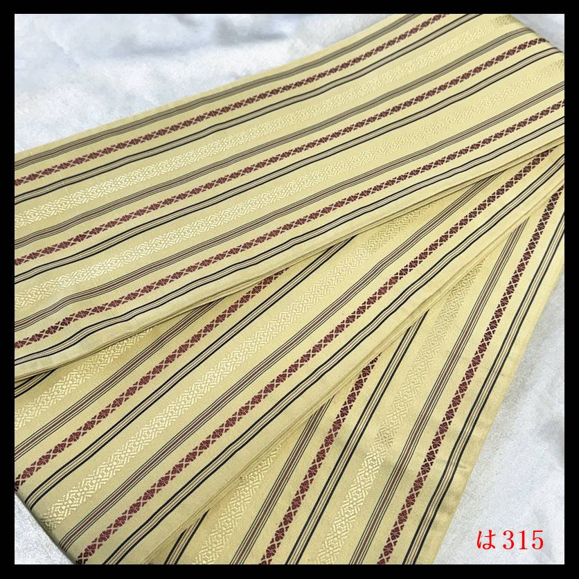 > 【は315】厳選美品 半幅帯 本場筑前博多織 小袋帯浴衣帯 献上柄 女郎花色地 正絹 ◇検◇着物簪袋帯名古屋帯和装小物帯締め