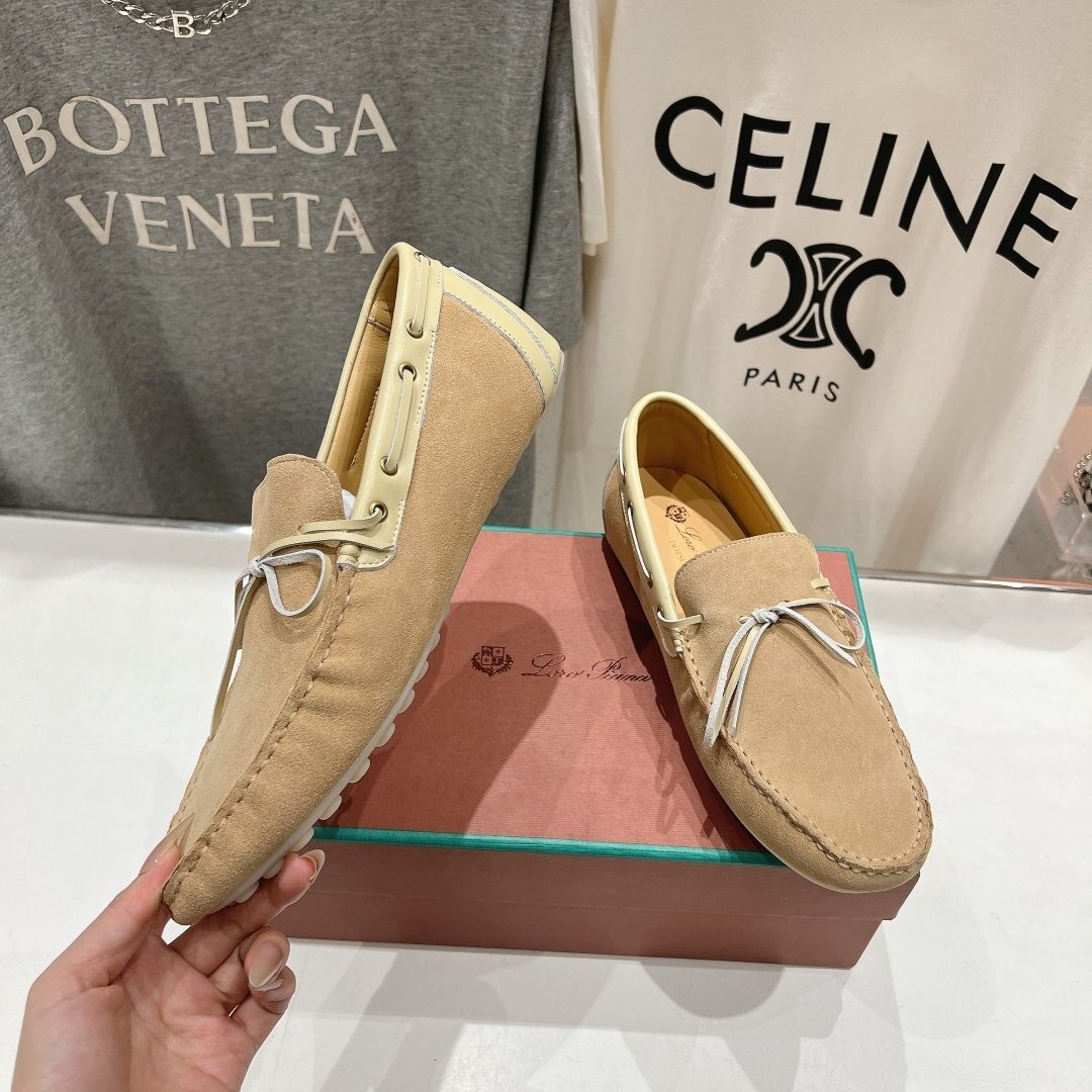 > ベージュ26.0cm ★送料無料★ロロピアーナメンズドライビングシューズ スエード モカシン,ソフトレザー, カジュアル ローファー
