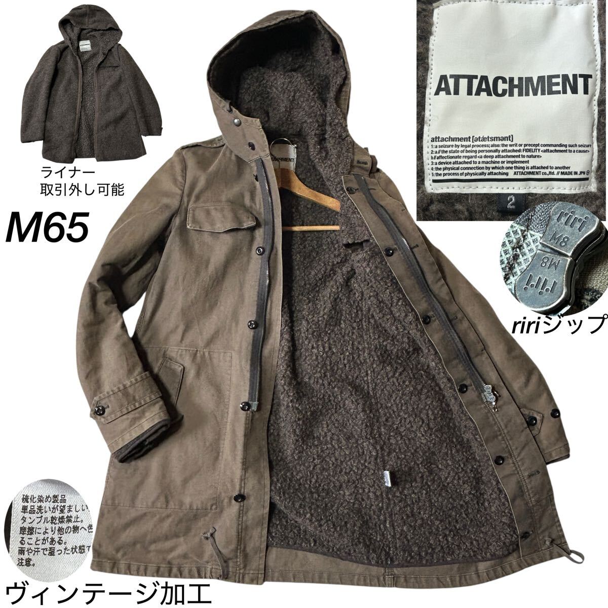 - 美品 ATTACHMENT アタッチメント M65 フィールドコート ライナー着脱可 ririジップ ヴィンテージ加工