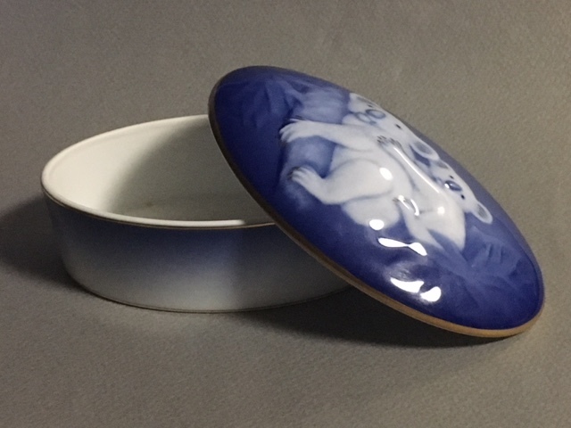 - ◎大倉陶園 染付け ボンボニエール 小物入れ 蓋物 「コアラ親子」◎y9希少