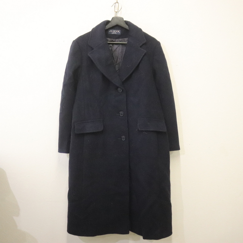 > I641 80sビンテージ J.G.HOOK ウールチェスターコート USA製■1980年代製 約Lサイズくらい ネイビー ロングコート レディース 古着 希少