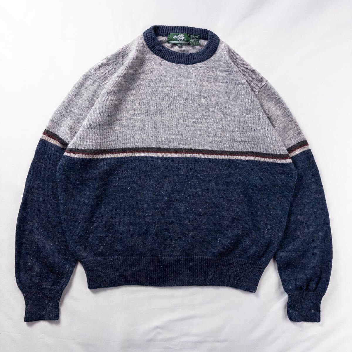 > US Vintage 90s HUNTERS RIDGE アクリル ウール ポリ くすみカラー ボーダー メランジ カジュアル グレー ネイビー 紺 デザインニット