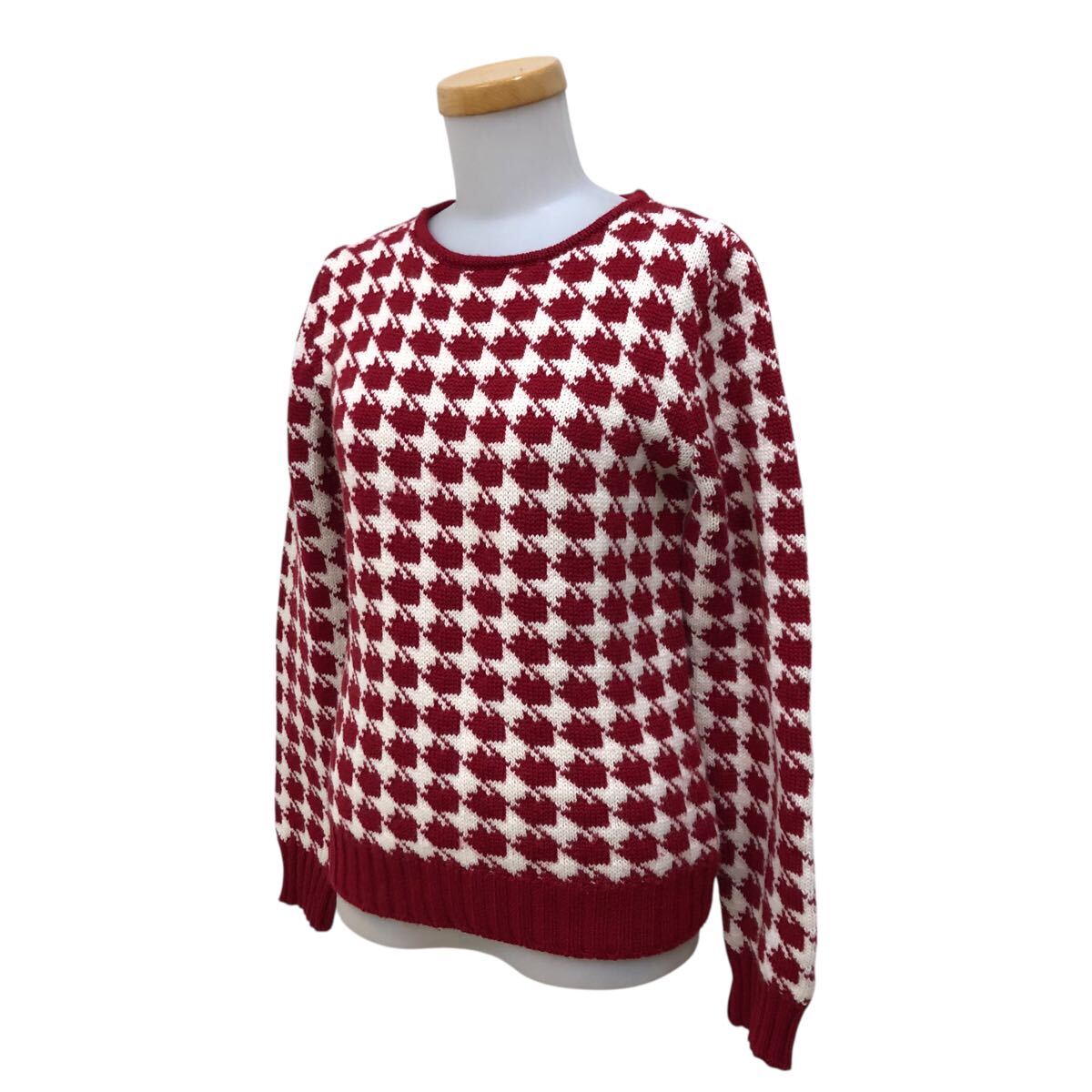 - 10K340-23 Max&Co. マックスアンドコー ウール ニット セーター 編み込み トップス 千鳥柄 赤白 レディース 女性用 M