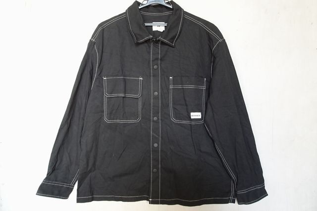 > H&M/長袖シャツジャケット/WORKWEAR/前スナップボタン/両胸ポケット/白ステッチ糸/黒/ブラック/EURサイズL(10/24R7)