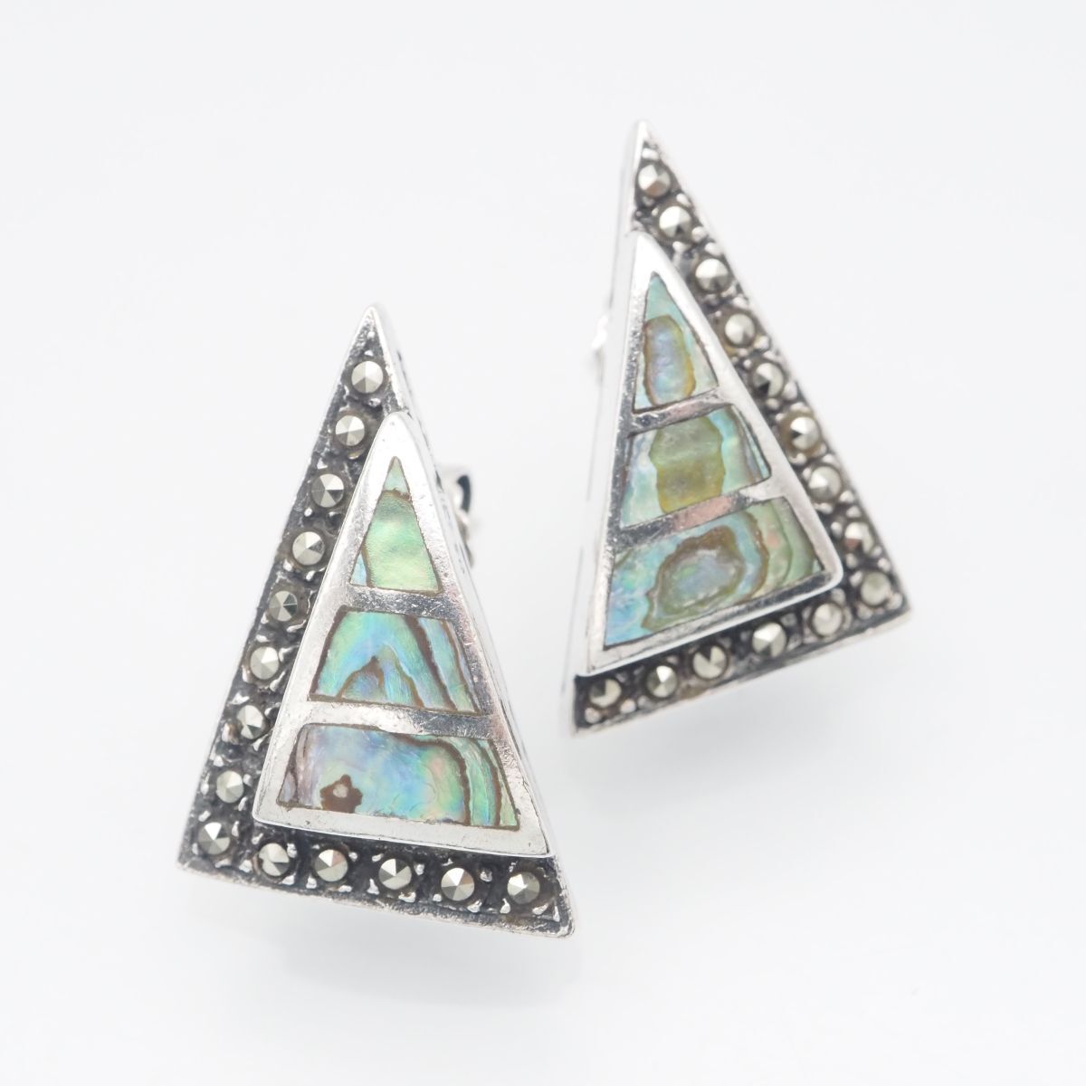 - H186 シェル マーカサイト マルカジット 925刻印 ピアス インレイ デザイン シルバー ヴィンテージ