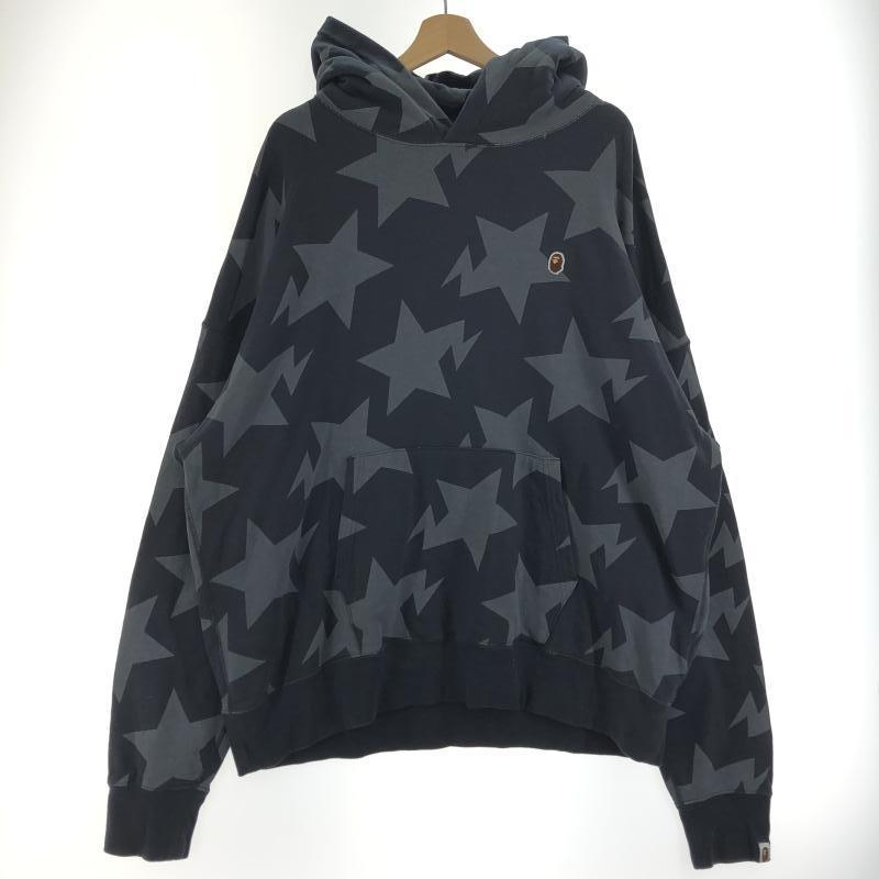 > 【中古】A BATHING APE STA PATTERN LOOSE FIT PULLOVER HOODIE パーカー XL グレー アベイシングエイプ[240010491863]