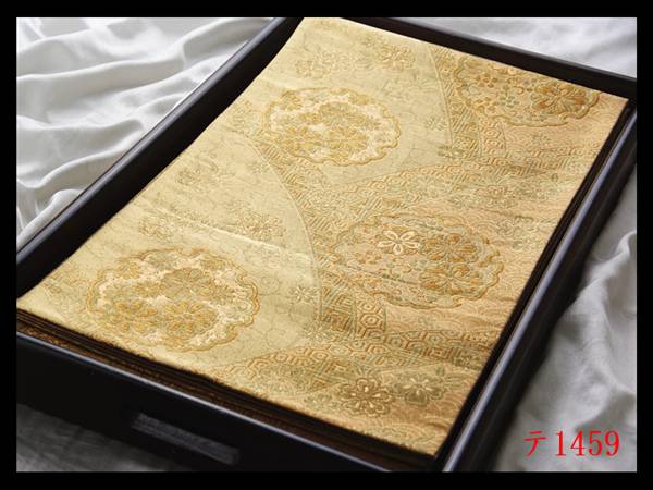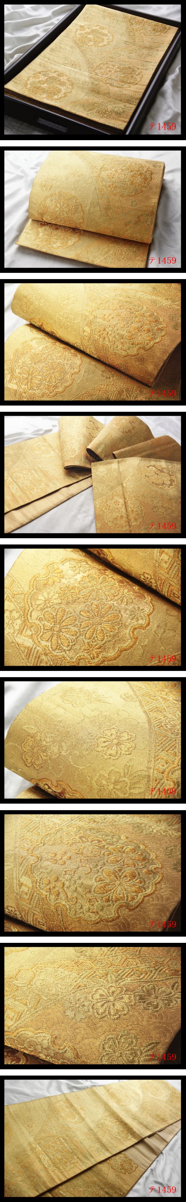 - 蔵【テ1459】西陣逸品 雪輪草花紋 金色地 気品豊かに 正絹純金糸六通高級美術袋帯 ◇検◇簪着物名古屋帯和装小物帯締め