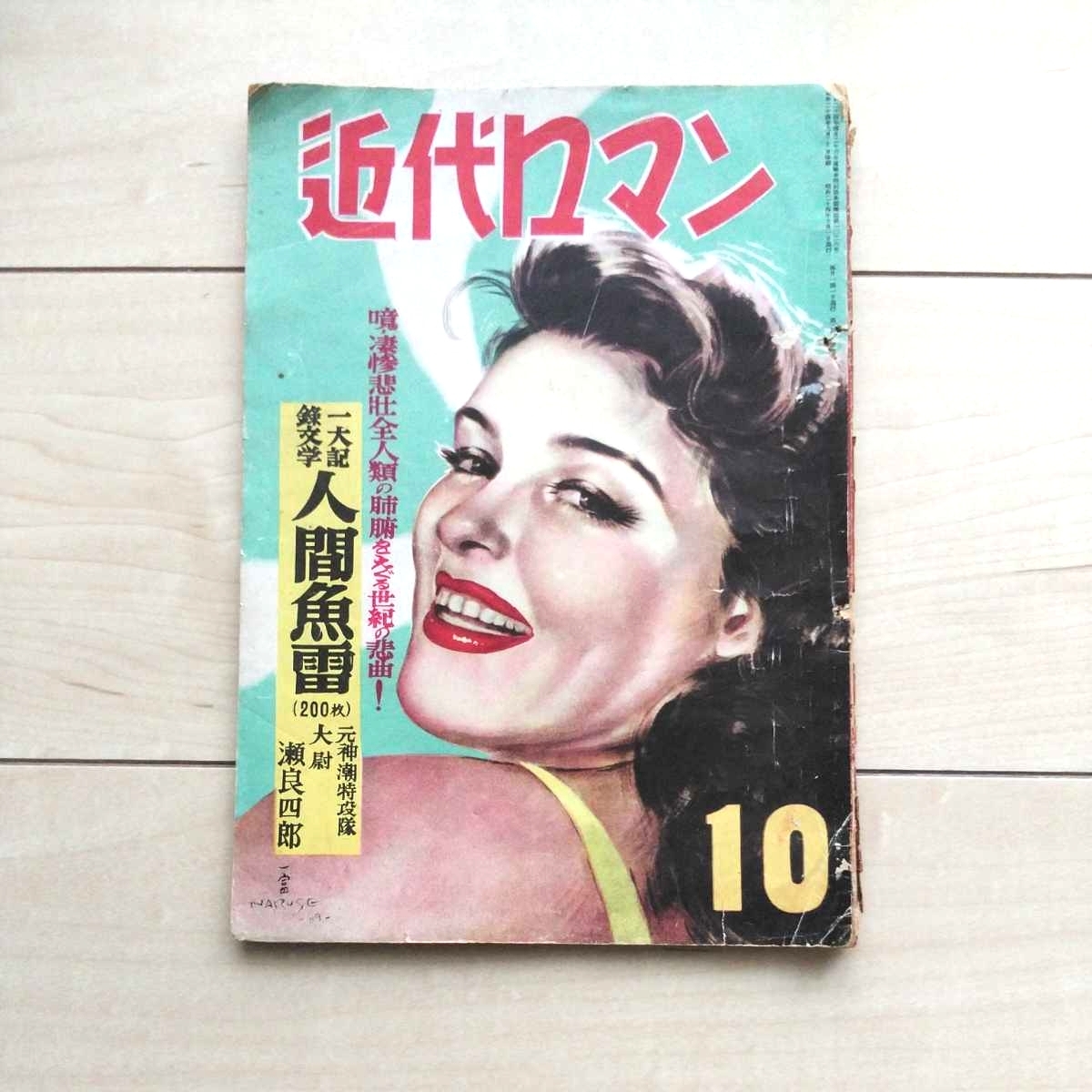 > ■『近代ロマン』昭和24年10月號。表紙畫・成瀬一富。近代ロマン社發行。元神潮特攻隊大尉瀬良四郎「人間魚雷」。林耕三「蕃女カウラン」。