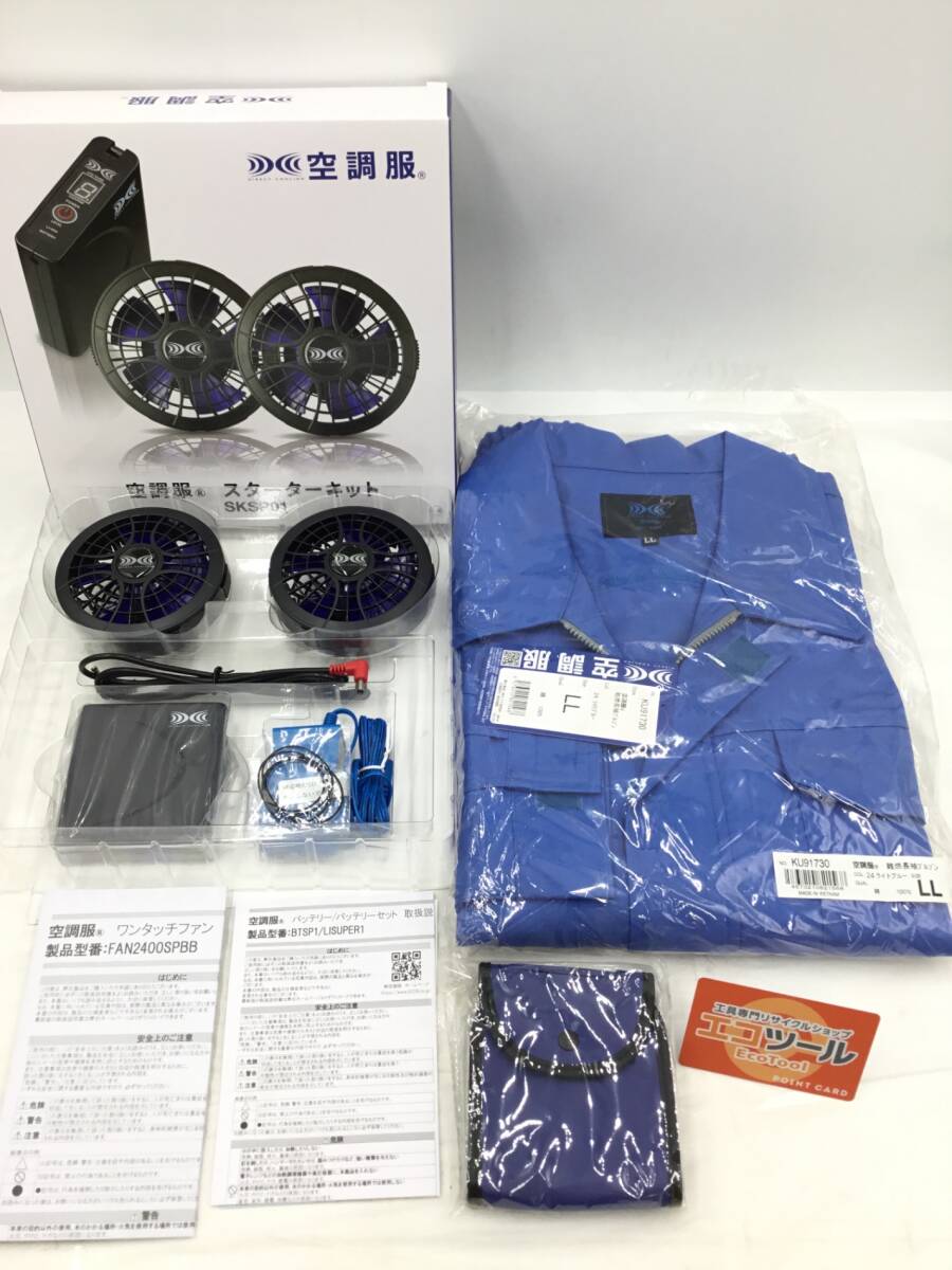 - 【未使用】☆空調服 綿難燃長袖 ライトブルーLL KU91730+パワーファンスタータキット SKSP01 セット [ITXDVLHZ5IT4][Y02]
