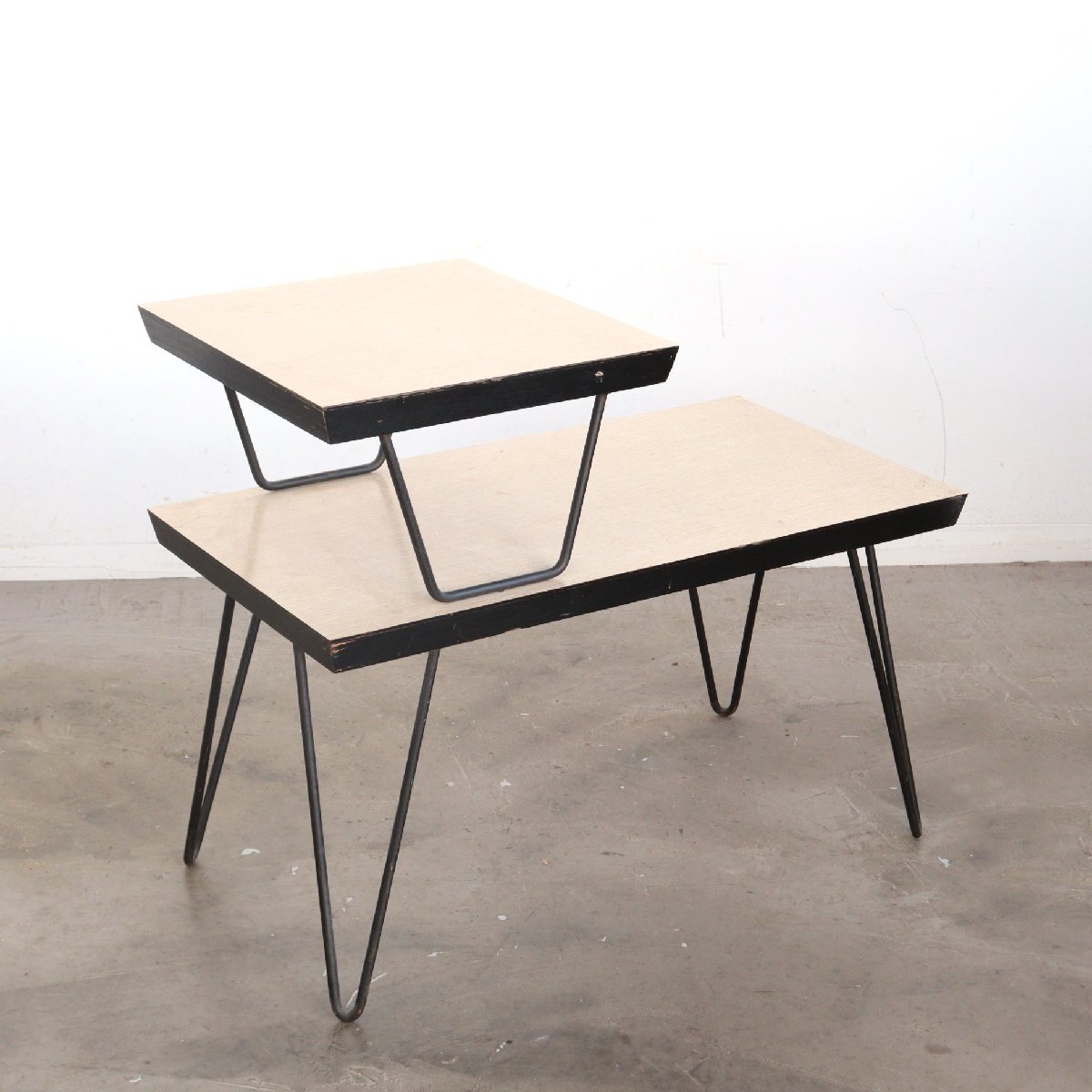 - 50s ヘアピンレッグ ステップエンドテーブル/アンティーク ヴィンテージ 化粧板 サイドテーブル アイアン インテリア 家具#510-80-90-158