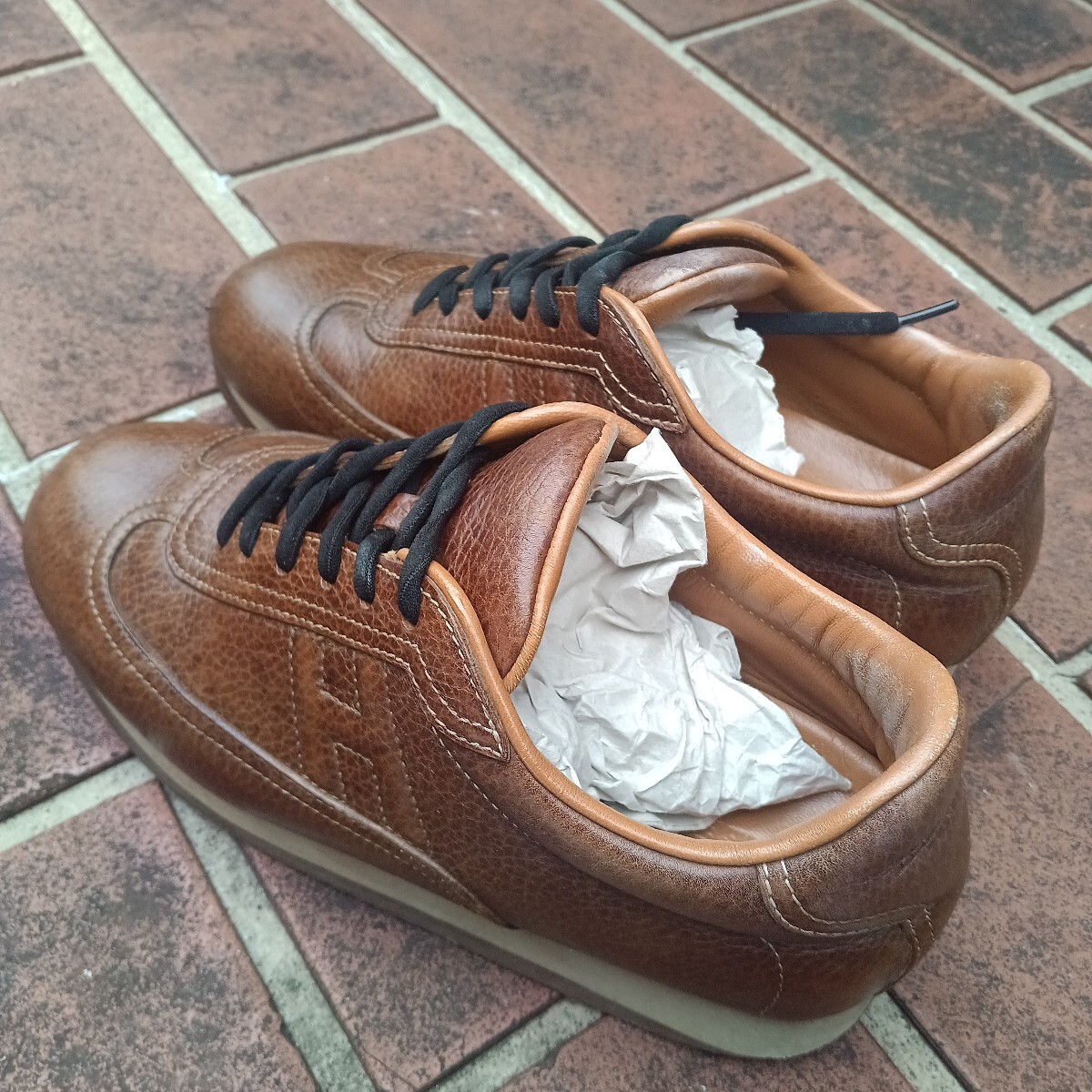 - HERMES 36 茶色 レザースニーカー レザー スニーカー HERMES エルメス ブラウン Hロゴ