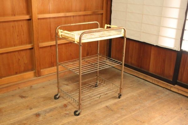 - 【蔵出し】★美品 台所用品『昭和レトロ 花柄 取っ手付きキッチンワゴン』★検:(ビンテージ/アンティーク/ノスタルジック/当時物)70516E