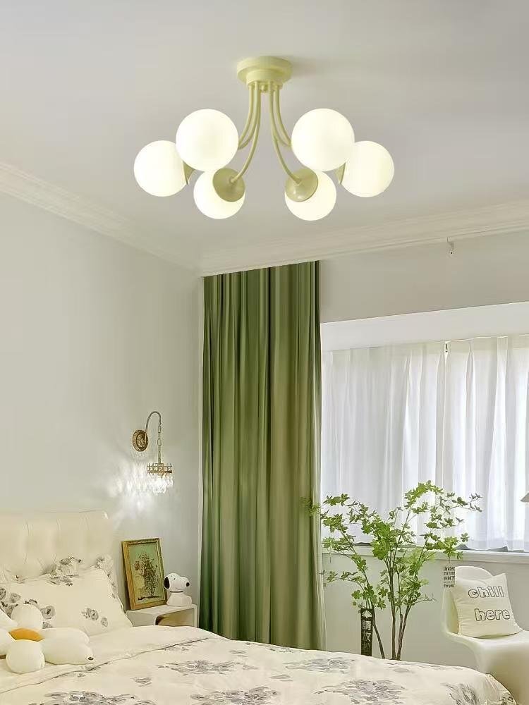 - 北欧モダン ミルクガラス 6灯シーリングライト スペースエイジ風 ナチュラルベージュ アイアンライト リビング 寝室用 シャンデリア