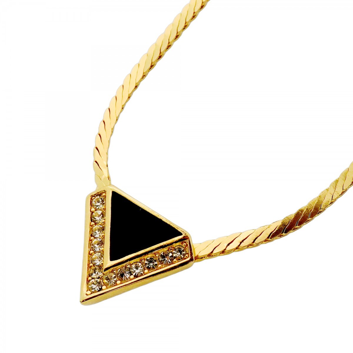 - ★SALE【5jib0807】クリスチャンディオール ネックレス GPメッキ ラインストーン ゴールド ブラック【中古】レディース