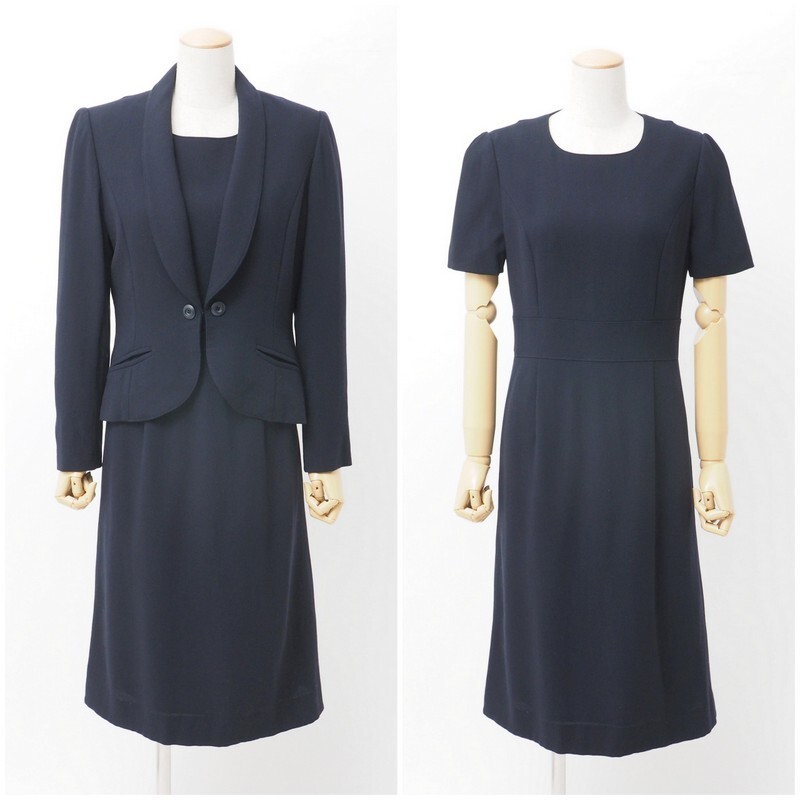 - MI1946□ミスアシダ/miss ashida セットアップ フォーマルウェア ショールカラー ジャケット + 半袖 ワンピ―ス サイズ9 ネイビー系