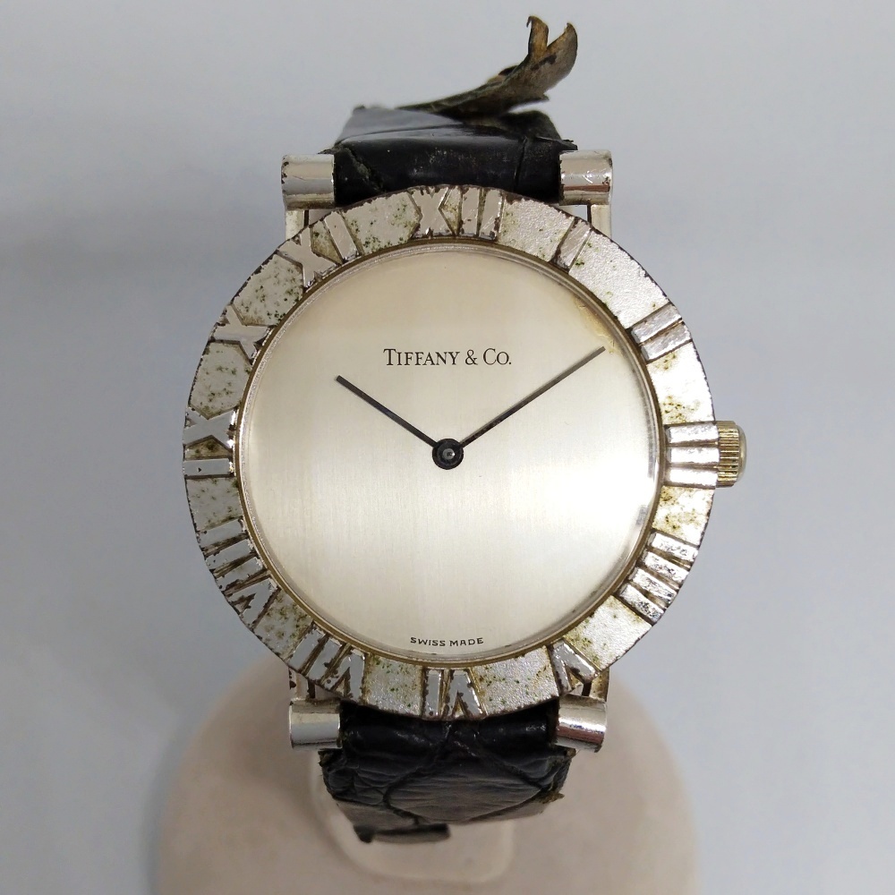 - B25-2366【ジャンク】TIFFANY&Co. ティファニー D286753 クォーツ スターリングシルバー 腕時計 ※社外ベルト/純正尾錠 ※動作未確認