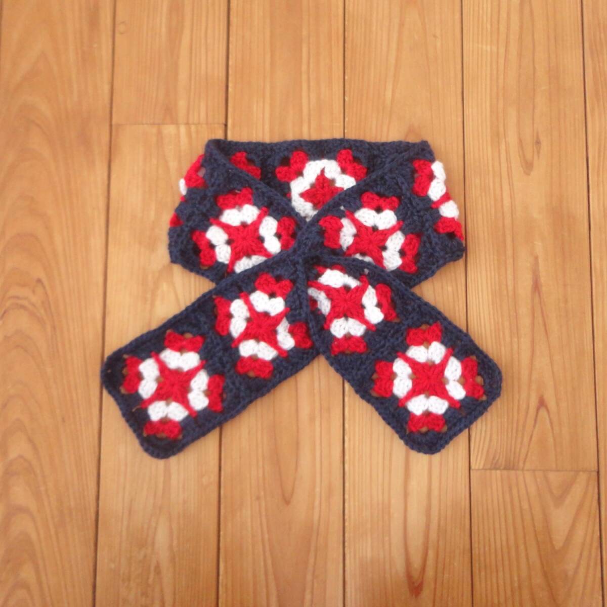 - グラニースクエアのマフラー*ネックウォーマー*オトナサイズ*RD×NV*ハンドメイド*b927