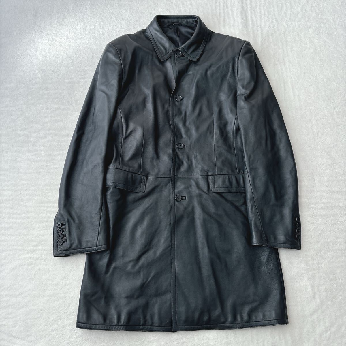 - 【美品】コムサデモードメン レザー コート ラムレザー 羊革 ブラック 黒 COMME CA DU MODE MEN 紳士服 チェスターコート
