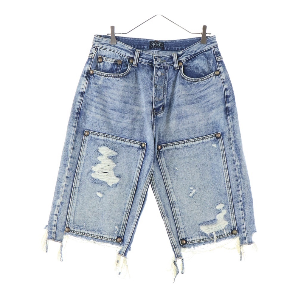 - THUG CLUB サグクラブ ダメージ加工 ダブルニーデニムショーツ ハーフパンツ インディゴブルー TC24PT0301
